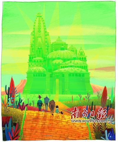 小说的另一个特点是神话描写和人情世态的有机融合。读过《绿野仙踪》的人都不会忘记其中关于绿宝石城及其统治者奥兹国王的故事。绿宝石城和奥兹国王都具有浓郁的神秘色彩,进入这个城的人必须戴上一副特制的眼镜,城里所有的东西都是一种色彩——绿色。奥兹国王也是千变万化,有时是一头可怕的野兽,有时是一个美丽的女人,有时是一团燃烧的火球,有时则干脆是空无一物。直到谜底揭晓,我们才知道,高贵无比的国王奥兹不过是一个蹩脚的魔法师,所谓绿宝石城其实并非绿色,不过是因为人们戴上了绿色眼镜的缘故。这虽然是神话,难道不是写出了某种人情世态吗?在现实生活中,人们崇拜帝王,崇拜神灵,崇拜权势,崇拜金钱,其实也不过是人们戴上了有色眼镜,也不过是在玩弄道具而已。