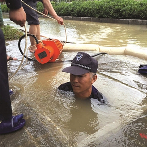 昨晨南京的一场暴雨致城市多地被淹,不少地方积水严重,通行不畅。一些路面的窨井盖更是被大雨冲入下水道,对行人的人身安全造成危害。在铁心桥附近,49岁的铁心桥街道城管科协管员许凤华,跳下齐脖深的水里捞井盖。