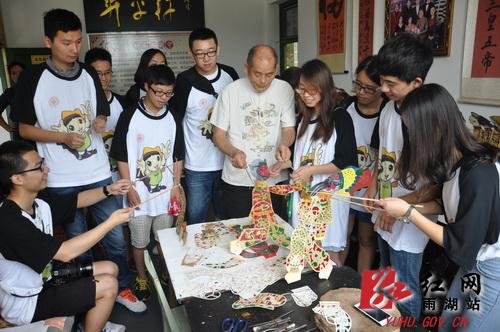 红网雨湖站7月8日讯(分站记者 王梓任 通讯员 吴渊)湖南省湘潭市纸影戏被视为南方影戏的重要代表,主要流布于鹤岭、茶恩寺、云湖桥、石鼓等乡镇及邻近地区。其中,鹤岭吴氏纸影和戏班是湘潭纸影戏的领头军,也极大促进了这门艺术的广泛传播与发展。7月7日,东华大学志愿者来到雨湖区鹤岭镇参观吴升平纸影博物馆,了解剪纸、皮影等艺术。