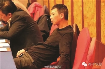 导演冯小刚开会坐姿