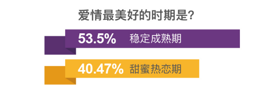 在关于爱情中最美好时期这一调查选项中,数据显示,超过五成受访者认为爱情最美好的时期是成熟期,比例远超40.47%的热恋期。