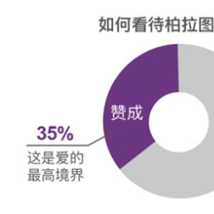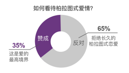 珍爱网调研数据显示,近65%的受访单身男女拒绝长久的柏拉图式恋爱,认为灵与欲的平衡才是理想的爱情状态。仅35%的受访者赞成柏拉图式的爱情,认为这是爱情的最高境界。