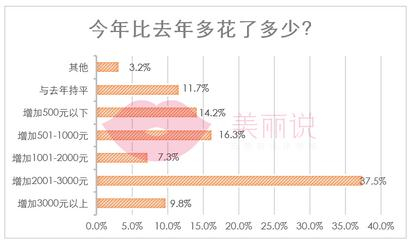 数据显示,超过8成的女性在时尚消费上的支出高于 去年同期,其中,超过4成女性平均每月多花2000元,近1 成女性每月多花的幅度在3000元以上,仅不到2成的女性 消费支出与去年持平。