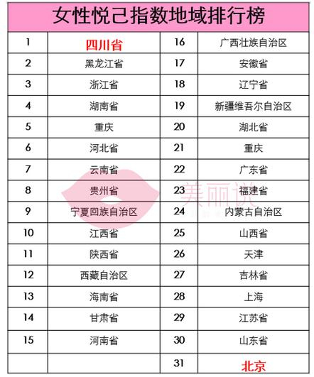 全国女性悦己指数四川居首,黑龙江、浙江紧随其后。 四川自古盛产美女,川妹子大胆泼辣,爱时尚、懂享受,且 四川地区女性地位普遍较高;另一方面,近年来四川经济趋势向好,四川地区女性收入的涨幅在全国也名列前茅。在 “悦己”这件事上,四川女性可谓占尽天时地利人和。