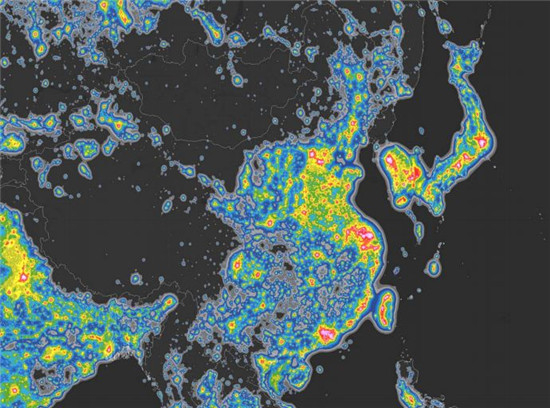 《科学进展》刊登的中国人造夜空光地图