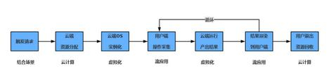 云手机技术的强大之处还在于,无需对已有Android APP 做任何修改,即可以将一个本地APP转化为云端APP,一次完整的云手机使用的内部实现流程如下: