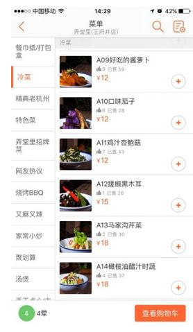 第二步:进入点菜页面,查看菜单,选中心仪的菜品加入购物车。