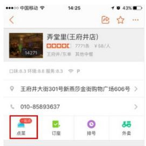 第一步:通过大众点评客户端商家页面,点击“点菜”按钮。