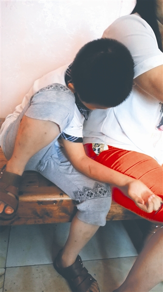 昨日,成都商报记者在蓬溪县西湖路,找到了照片中的孩子小文。他和两名小朋友在玩耍,母亲不在家中。其手上的血痕依然清晰可见。“我挨打是因为不听话,做作业时跑出去耍,考试也考差了。”小文证实了自己挨打罚跪的事。一名小朋友说,小文被罚跪时,是他和另一名朋友在帮忙打伞遮雨。