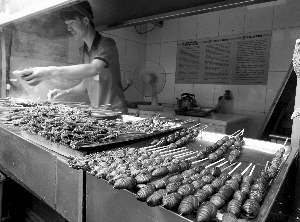 烧烤摊上“盘中餐”