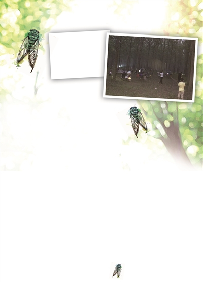 一到晚上,杨树林里全是捕蝉人