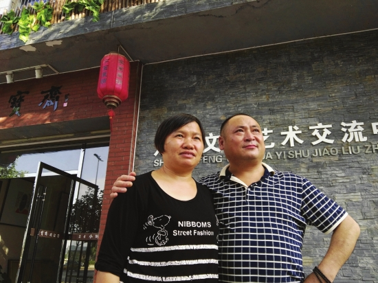 7月7日,双峰县,经营画廊的曹卫平(左)和丈夫刘住龙。图/记者袁树勋