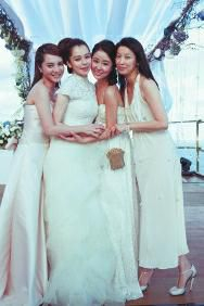 徐若瑄婚礼的三个伴娘里,只有林心如一个是明星。每一位伴娘的礼服不是同款,而且和新娘一样是长款白纱,虽然徐若瑄和林心如同框的时候,你可能都分不清谁是新娘,但这种姐妹们一起美起来的感觉也是相当有爱。