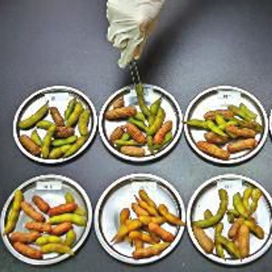 ■实验样本:花生样本8份,标记为花生样本一至样本八,毛豆样本8份,标记为样本一至样本八(注:花生样本一和毛豆样本一来自同一家烧烤摊点,其余样本关系同上)