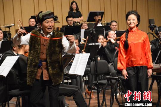 担任演唱嘉宾的丁毅(左)与赵炬合唱《北风吹--扎红头绳》 傅煜 摄