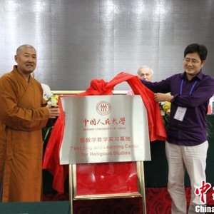 闭幕式上,妙江大和尚与中国人民大学哲学院宗教学张文良教授共同为中国人民大学宗教学教学研究实习基地揭牌。目前,五台山佛教国际研究院与近30所世界顶尖级的大学中汉传佛教研究机构形成联盟,期望以此为依托,在五台山建立一所国际性佛教交流平台,使其成为全世界研究佛学教育与宗教对话的高等学府。