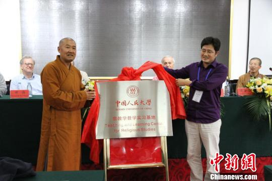闭幕式上,妙江大和尚与中国人民大学哲学院宗教学张文良教授共同为中国人民大学宗教学教学研究实习基地揭牌。目前,五台山佛教国际研究院与近30所世界顶尖级的大学中汉传佛教研究机构形成联盟,期望以此为依托,在五台山建立一所国际性佛教交流平台,使其成为全世界研究佛学�