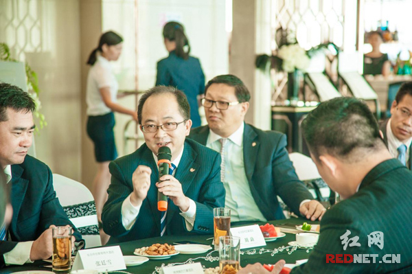 7月23日下午,由长沙国际品牌酒店俱乐部(以下简称“俱乐部”)主办,华远地产承办,广东金时通家具装饰工程有限公司全程赞助的主题为“工匠精神,如何提高‘房价’”高峰论坛在长沙华远·华中心举行。湖南省政协委员、湖南省旅游局原副局长刘之明,湖南省安监局副巡视员胡金文,长沙市旅游局副局长伍畅林,长沙旅游协会会长杨志清,应邀出席本次活动。俱乐部成员华远地产长沙公司总经理许智来,华远君悦酒店(筹建)项目总经理陈志华盛装出席,邀请了包括华远君悦酒店、金茂豪华精选酒店、北辰洲际酒店、皇冠假日酒店、华创索菲特酒店、温德姆至尊豪廷酒店、美的万豪酒店、恒伟jw万豪酒店、建鸿达威斯汀酒店、凯宾斯基酒店、佳兴世尊酒店等运营酒店及在建酒店的总经理和项目总经理。出席本次联谊会的还有长沙世纪金源酒店、现代凯莱大酒店、神农大酒店、茉莉花酒店的总经理等本土酒店同行同仁。本次峰会由梅溪湖金茂豪华精选酒店业主方总经理苏基华召集并主持。