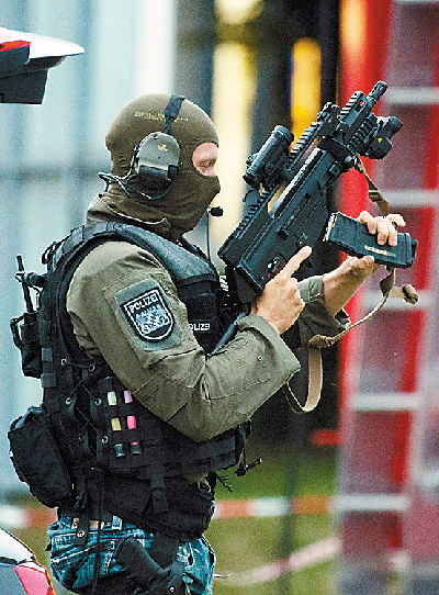 ? 赶到枪击案现场的德国反恐部队队员 IC供图 ?