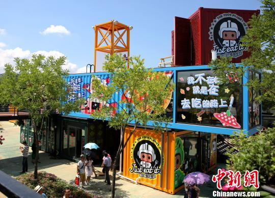 7月26日,金海湖·花间集开街仪式暨金海湖国际美食节在北京市平谷区4A级景区金海湖开幕。图为主题集装箱小镇。 崔东亮 摄