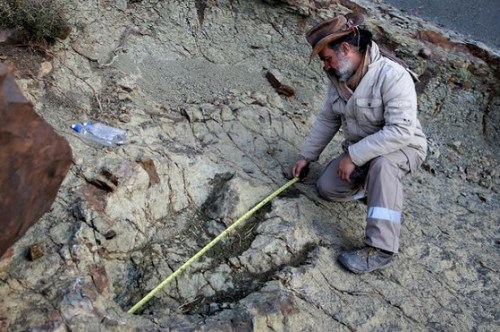 报道称,这名玻利维亚当地导游在苏克雷64公里外的软土区,发现这个庞大的恐龙脚印,附近还另外挖出近一万多个恐龙脚印。
