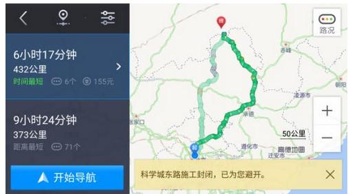 导航计算路径时会自动的帮你规避施工路段,还能查看此路段上详细的红绿灯个数和收费站的收费情况。
