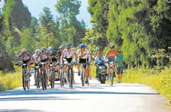 优美的环境吸引了不少骑手来这里参加自行车爬坡赛。 蔡勇明 摄