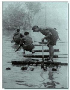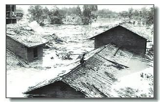 清楚地记着“7·31”那个终生难忘的日子,在那个大雨如绳的时刻,洪水来势凶猛,我捆绑的木排被洪火冲在了树杈间,眼看连人带木排就要冲向下游。在这危急的关头,好多邻居都在呼喊着我的名字,都在为我的生命担忧,都在眼睁睁地看着我将被浪涛吞噬,那时一旦树尖淹没了,我瞬间就会被滔天大浪卷走。