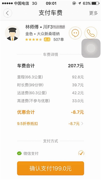 林师傅证实,他在接单后确曾要求胡女士支付现金,也曾在中途要求胡女士加价。“扣了20%多的平台费后,油费都跑不够,所以我让她给现金。”林师傅说,中途也确实要求胡女士加价,是因为他发现滴滴出行平台的计费出现异常。“广汉到机场差不多70公里,100块钱咋跑得出来,正常的要170多块。所以,我要求她加价100元,这包括30多元的过路费。”