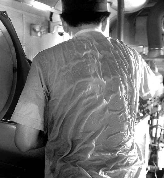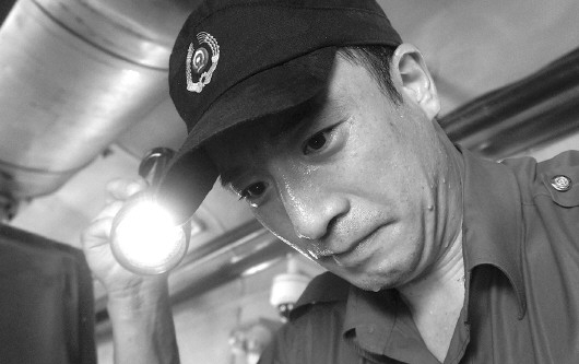 已经有30多年发电车检修经验的张永祥说,每次检修浑身上下内外全湿透,“从11点半到现在,我已经喝了四瓶水了。”据了解,发电车检修员一天下来要喝掉六七升水,是平常人的五倍,喝完后水分接着变成汗排出去了。