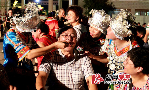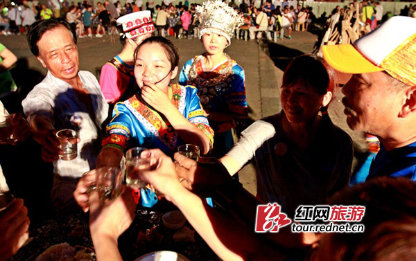 崀山瑶王宴-姑娘敬酒。