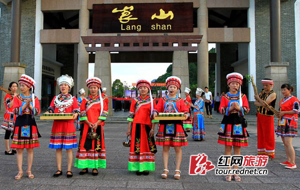 位于湘西南边陲新宁县境内的“中国丹霞•崀山”,拥有“鲸鱼闹海”“天一巷”“将军石”“辣椒峰”“骆驼峰”“天生桥”等天下绝景。而“瑶王宴”是新宁瑶族最隆重的待客习俗之一,包括拦门酒、瑶王宴、劝酒歌、摇摇舞等多个环节。席面上除油茶外,还有十二道丰盛的佳肴。瑶家姑娘们手提特色米酒,唱着劝酒歌,一桌一桌的敬酒,随后围绕着客人跳起摇摇舞。整个“瑶王宴”民族色彩浓郁,气氛热烈,群众参与互动性强,是崀山深受游客喜爱的旅游休闲产品之一。