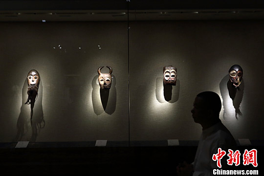 8月2日,“神灵的艺术”--来自中部非洲的面具特展在南京博物院开展,百余件精美面具和十余件相关乐器集中亮相,并配备了与面具相辅相成的音乐和影视资料。中新社记者 泱波 摄