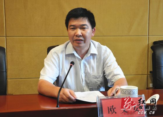 娄底市委组织部副部长欧文安宣布省委、市委关于双峰县委、政府主要领导职务调整的决定
