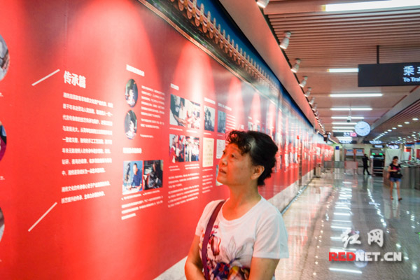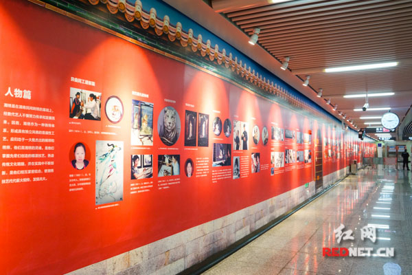 长沙市地铁一号线的南门口站内,“大美湖湘,锦绣地铁”的字样十分显眼。