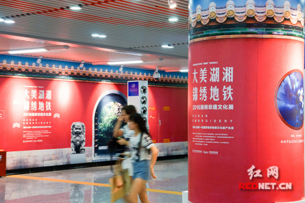 红网长沙8月9日讯(时刻新闻实习生 赵毅旻 记者 杨杨)8月9日,2016年“大美湖湘·锦绣地铁”湘绣非遗文化展在长沙地铁一号线南门口站与市民上演了一次唯美的邂逅。上百个湘绣作品参展,给七夕节中的长沙增添了一份独特的湘绣韵味。