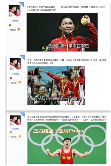 吧友们正是通过直接又好玩的方式,表达了对祖国的热爱、对体育健儿们的赞美。