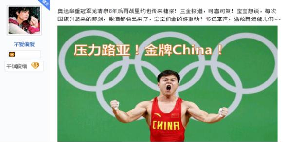 中国奥运队连斩5金,网友另类欢庆方式惊健儿