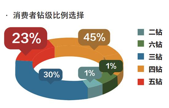 以上半年近百万的携程跟团游、自由行的预订数据为例,选择4、5钻高钻级产品的客人达到5成以上。预订5钻产品的客人人数同比上升2成。携程5钻产品规定 住宿选用五星级的酒店,用车空座率不小于15%,安排当地特色的餐厅就餐等。从今年新推出的“非常旅游”系列品质游产品看,80%中国游客选择五星级度假 线路。