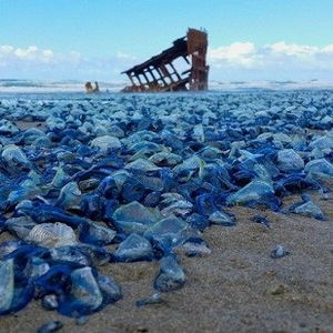 英海滩密布蓝色水母 美丽小生物竟是杀人水母近亲