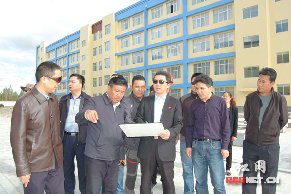 新建的山南市第三高级中学位于扎囊县。廖良辉一行早早来到学校,巡视了整个校园。从学生食堂、浴室、宿舍到教工宿舍、教工之家、教学楼、办公楼,每到一处,廖良辉都仔细查看并询问工程设计、施工、验收及功能情况,对学校建设进度和成效予以充分肯定,对可能存在的问题提出相关意见,对后期校园绿化、运动场所建设等提出明确要求。