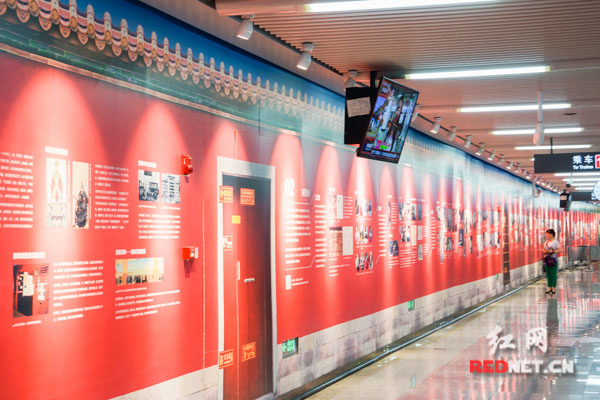 长沙独有的湘绣小镇“搬”进新开通的长沙地铁1号线南门口站了?没错,那些在古装片里的雕梁画栋、红墙黄瓦、扣环宫门,被融入地铁的创意文化墙中。让市民朋友踏入地铁站,便能感到南门口站“古色古韵”的观展氛围。