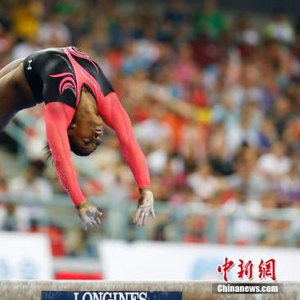 资料图:美国选手拜尔斯(BILES Simone)参加比赛。中新社发 盛佳鹏 摄