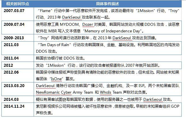 Lazarus组织历史活动相关重大事件节点