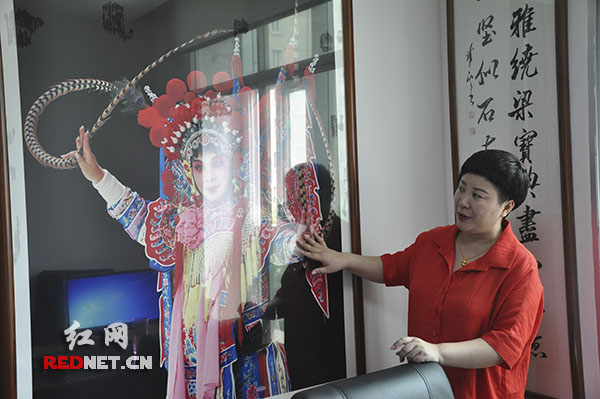 彭玲凝视着自己的剧照,述说其成长过程和获得中国戏剧表演艺术最高奖“梅花奖”的艰辛经历。