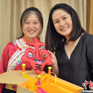 资料图 高金素梅(右)中新社发 刘忠俊 摄