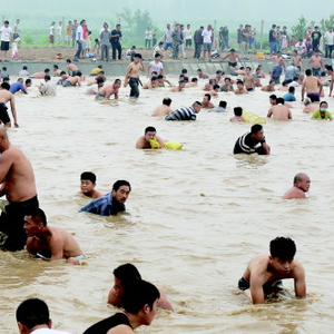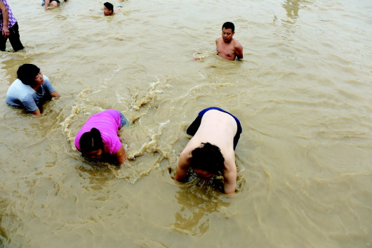 黄河岸边,万人“浑水”摸鲤鱼