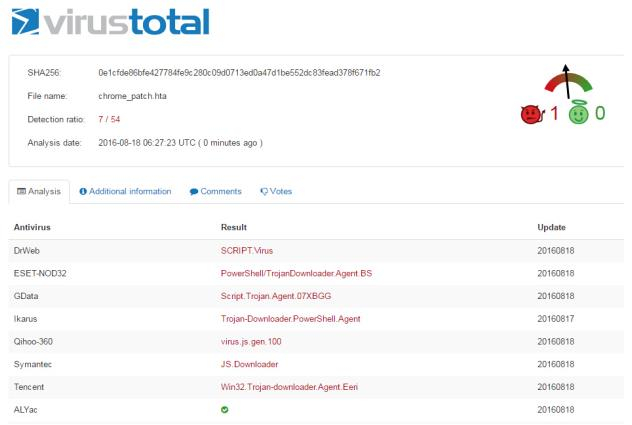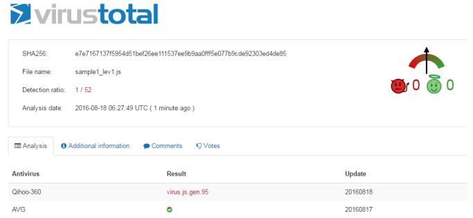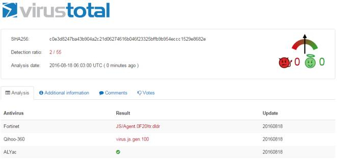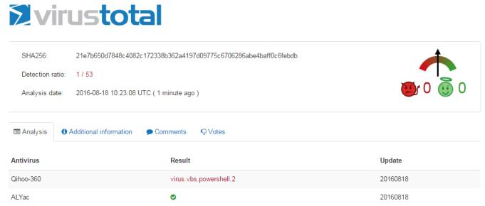 图 8:vbs敲诈者VirusTotal扫描结果