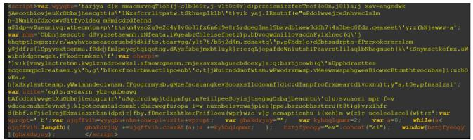 代码混淆方式和以往常见的混淆也发生了变化,以前的js敲诈者会通过字符拼接,数组利用,eval函数等方式进行混淆,而此样本主要通过字符的大小写变换,字符串中间添加多余的“^”符号进行混淆。
