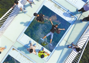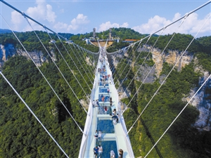 张家界大峡谷玻璃桥试运行首日游客爆棚